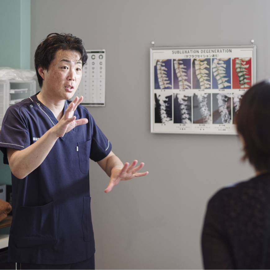 人体の構造を熟知しており、施術前に手で触れることによってどのような施術すればよいかを的確に判断しています。